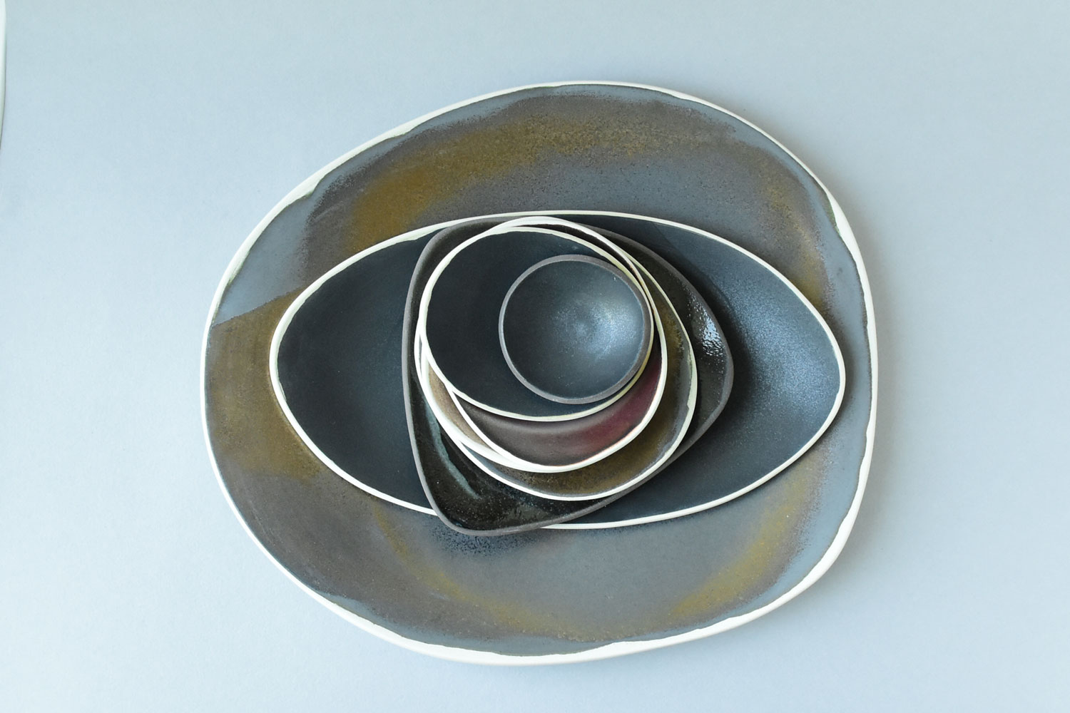 Judit Lantos wanted to work with clay for as long as she can remember, but her parents encouraged her to study decorative leather working instead. After graduating, she returned to pottery and worked as an apprentice for five years, soaking up everything she could about the craft. In 2000, she received the funds from her parents to established her own workshop and has not looked back since. "In the decade that followed, there was something of a gastro boom," Judit explains, "not only in Hungary, but all over Europe." This extended beyond food, into dining experience and décor, including tableware. Responding to this new demand, Judit began serving restaurants with custom tableware. Since then, she has also started making custom jewellery, always with an experimental approach in the finishes, turning to glazing and gilding among others.