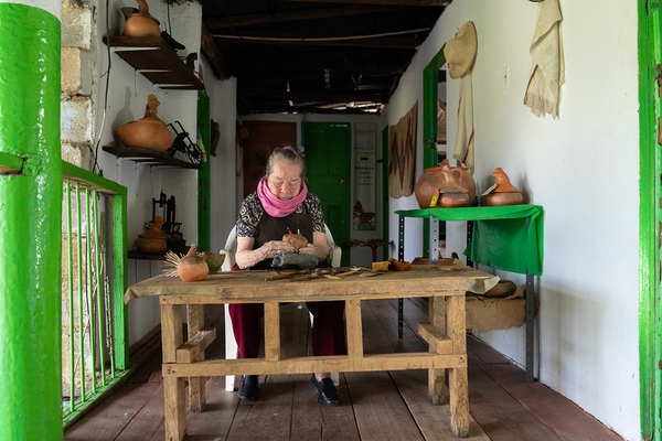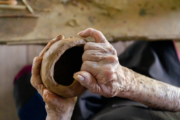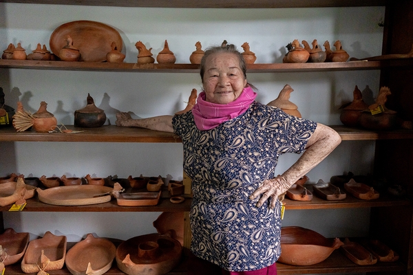 Julia Castillo was always determined to persevere despite the economic challenges she faced since her early childhood. She encountered ceramics at a challenging time in her life and it was a turning point for her. In the practice of clay modelling, she discovered a livelihood and her future. One afternoon, a hen that she had in her yard, came to stand next to her, and Julia saw in it the shape of a container. This is how her love for creating objects in the shape of hens was born. Julia taught ceramics to her son Carlos when he was young. For years, they have worked together in the workshop and taught others. They continue to encourage people to become artisans and work in the preservation of this beautiful craft.