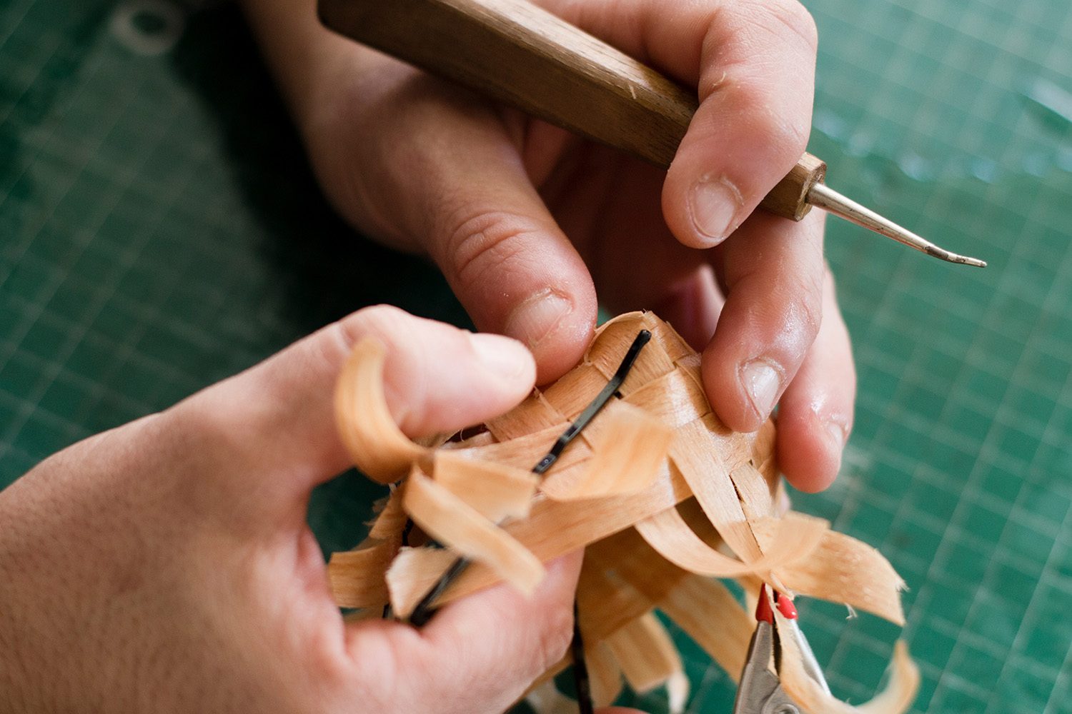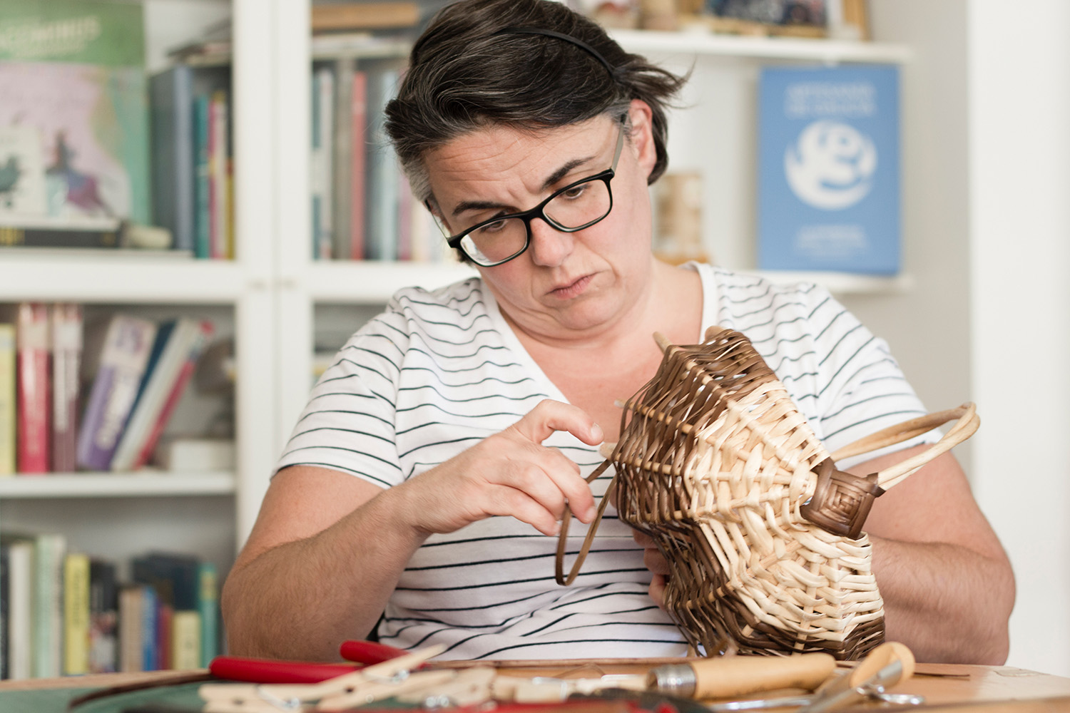 In 2004, after completing her training in illustration in La Coruña, Julia de le Cal moved to Barcelona to study graphic and industrial design at the Escola Massana. She later completed the Off Massana Postgraduate Workshop to work from the plurality of artistic languages, artistic craftsmanship, and design. "That is how my journey in the world of basketry began," she says. "I am interested in exploring the role of applied arts in contemporary lifestyles, with a transdisciplinary approach and from the common territory of arts and design. My specialty is rod basketry, applying methods specific to this craft and other disciplines. Within this universe, wicker is one of the main materials. However, the workshop is a space for research where all kinds of materials are applied – natural fibres, wood, fabrics, cordage, nautical textiles, cellulose fibres, paper, or recycled plastics."