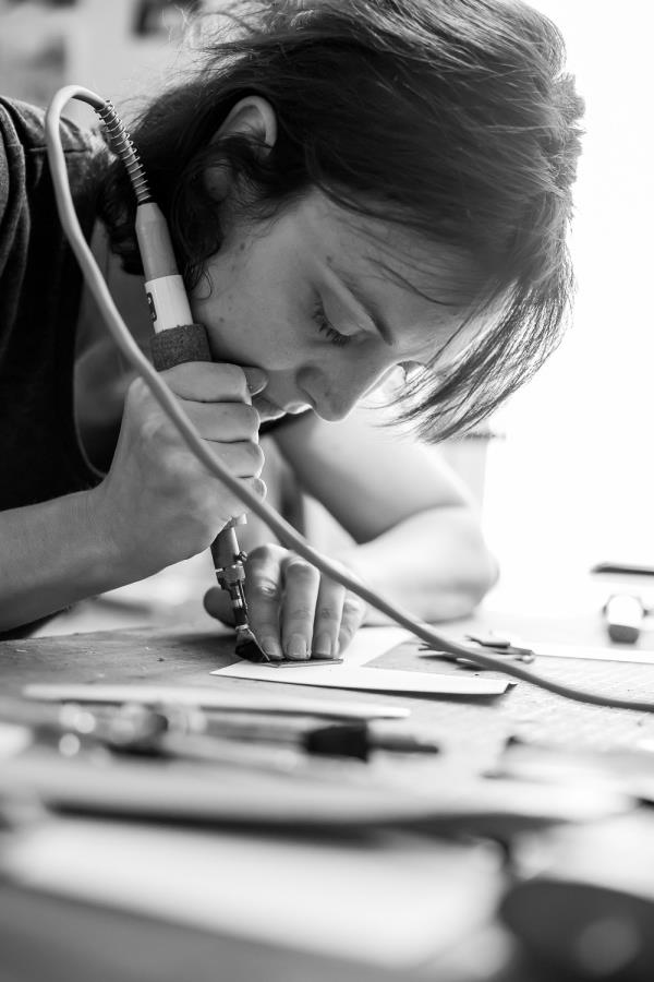 Juliette Noël discovered the work of the leather craftsmen while she was in Rome studying History of Art: it all made sense to her. Since then, she has been devoting her studies and career to this noble material. After a diploma at the Grégoire Ferrandi School in Paris, she strengthened her experience working for a modelmaker atelier. In 2016, Juliette opened her own workshop in the heart of Rouen, Atelier Julno. She is elaborating her own collection of leather goods. Sophistication can be read in the simplicity and high quality of her pieces. Faithful to the savoir-faire and traditional making, Juliette likes to bring modern twists through her finishes. Custom made bags are among her favourite challenges: finding the perfect case for the right object.
