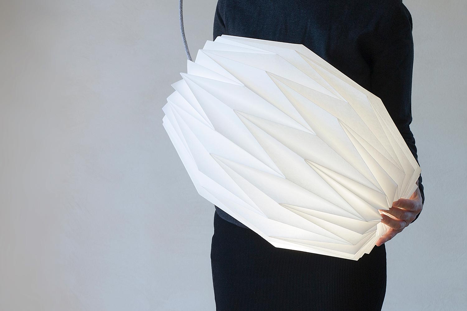 Jutta Müntefering's passion for paper began during her time studying visual communication in Düsseldorf. She transforms two-dimensional materials into three-dimensional objects using origami-inspired folding techniques. She founded her label, werkdepot, in 2005. Under this label, she initially offered a variety of design objects, but today she exclusively designs and manufactures origami lampshades. Jutta's lampshades combine traditional craftsmanship with creative design. Her definition of a successful product is one that is technically perfect and easy to use, as well as having a special charisma. The overall impression should be authentic, as if everything must be as it is. When hung in groups, her objects look especially stunning. There is a wide selection of different models available on her online shop.