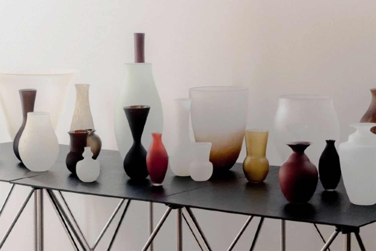 Jérémie St-Onge trained to be a glassmaker in Quebec and spent several years working in professional studios. Working largely alone, he launched his eponymous collection in 2019. Jérémie’s pieces favour precise gestures and aim for perfection, utilising tonal colours and ombre tones with a frosted glass finish. “I allow the material to guide me, trusting that the end result will answer my penchant for asymmetry and subtle variation,” he says. Jérémie’s colour palette reflects his childhood memories of mineral collecting, country landscapes and historic objects. Alongside his studio work at Verre d‘Onge, he is developing a body work featuring more sculptural pieces to explore glass as a contemporary object with historical depth.