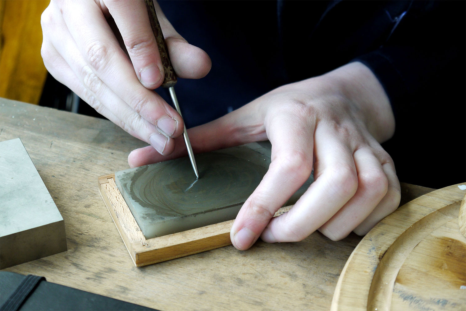 Karen Westland has been working in three dimensions for as long as she can remember. At school she would make sculptural objects out of paper clips, shells, beads and anything she could get her hands on, but it was only when she attended a summer class at the Glasgow School of Art that she became curious about metal. Hammer work is important in what she does, “whether to hand raise vessels or to gently tap a wooden block onto metal to smooth out an area of misbehaving silver sheet”. Also important is the ability to design with pencil and on the computer. But what Karen is really passionate about is the sustainability of her work, making objects using recycled metals, offcuts from local suppliers and ethically sourced gemstones.