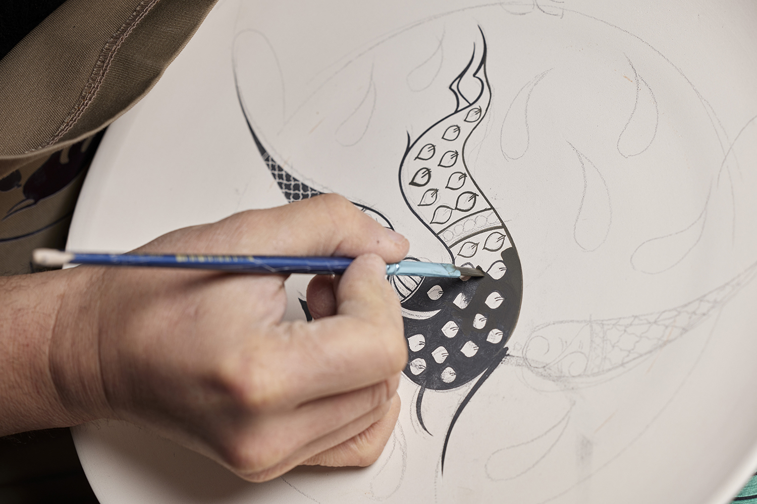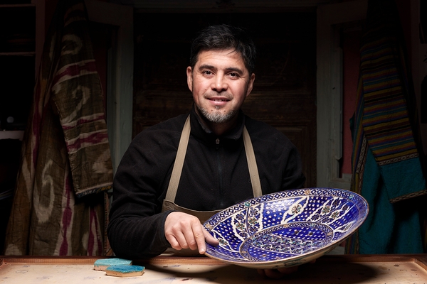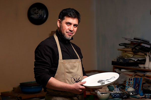 Abdulvahid Bukhoriy Karimov started working with clay in his childhood, learning to make toys in a village in the Bukhara region. He later moved to Tashkent and studied at the Art College and the National Institute of Fine Arts and Design. He always loved ancient ceramics and spent a lot of time in museums. Today he is particularly interested in working with national heritage, using local clays, reviving traditional patterns and techniques. Abdulvahid regularly participates in restoration projects and contributes to the reconstruction of historic sites. He creates unique pieces, but always cites history and national traditions as sources of inspiration. He is looking for balance between innovation and universal values, combining beauty and moderation.