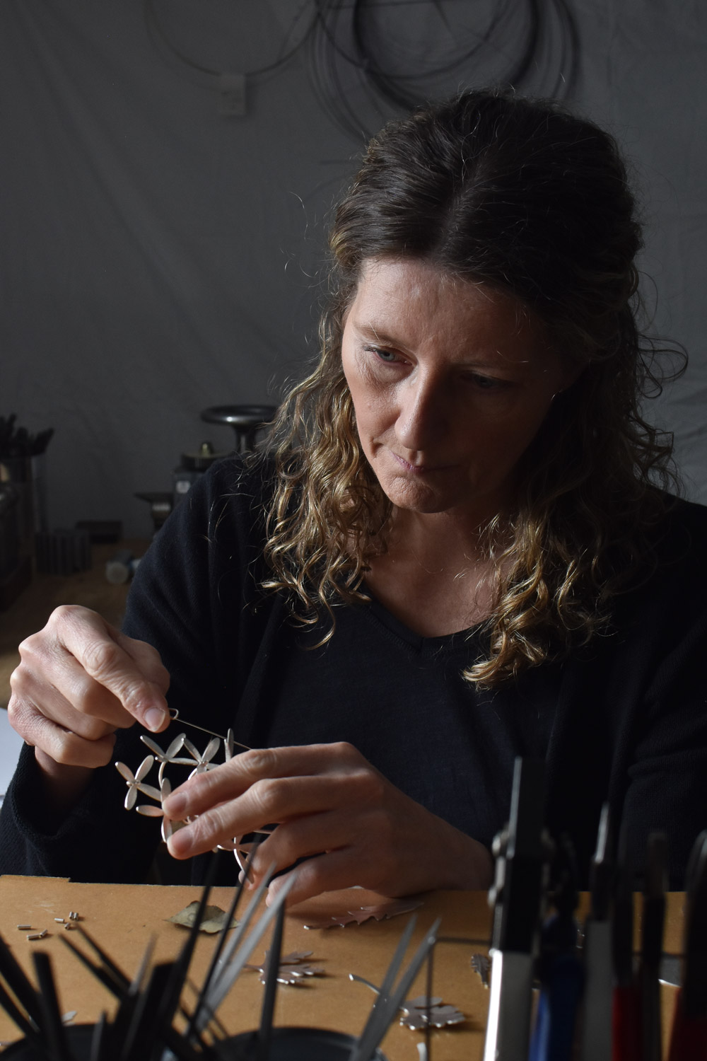 Jewellery designer and silversmith Katarina Henriksson developed an interest in metal forging as a child, when she watched her father work with iron and copper at the lamp factory where he was a mechanic. Her first artistic interest, however, was painting. After graduating from the Academy of Art and Design in Gothenburg, where she explored various art forms including forging, painting and drawing, silversmithing became her passion and livelihood. Her studio is located in the coastal community Skärhamn, on the island Tjörn on the Swedish west coast. Although she seeks inspiration in nature, Katarina's work is not necessarily tied to the geographic location.