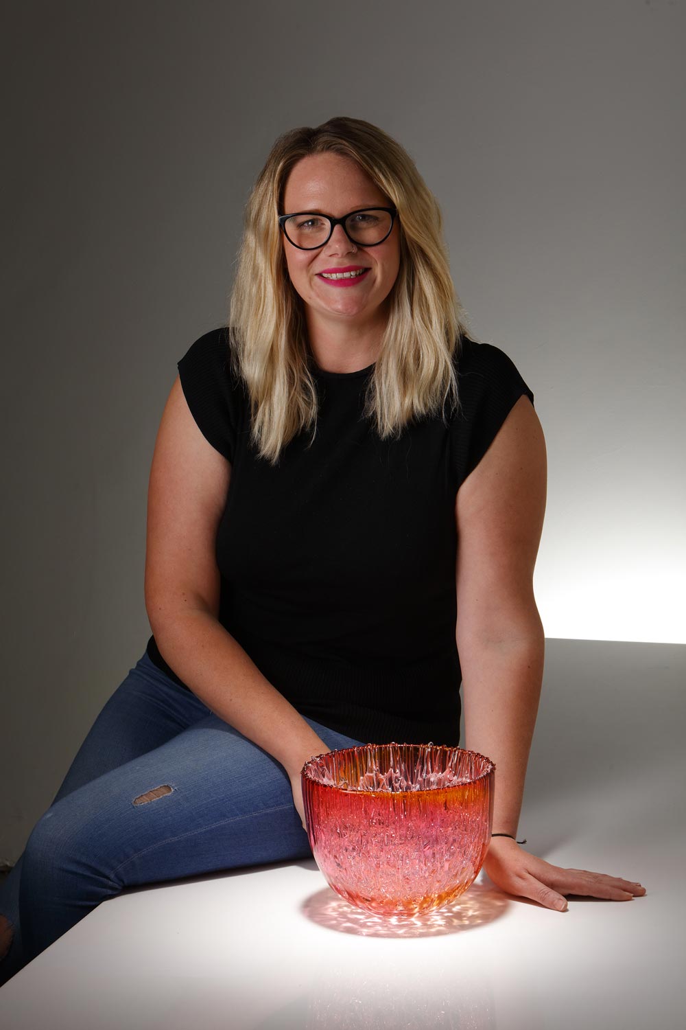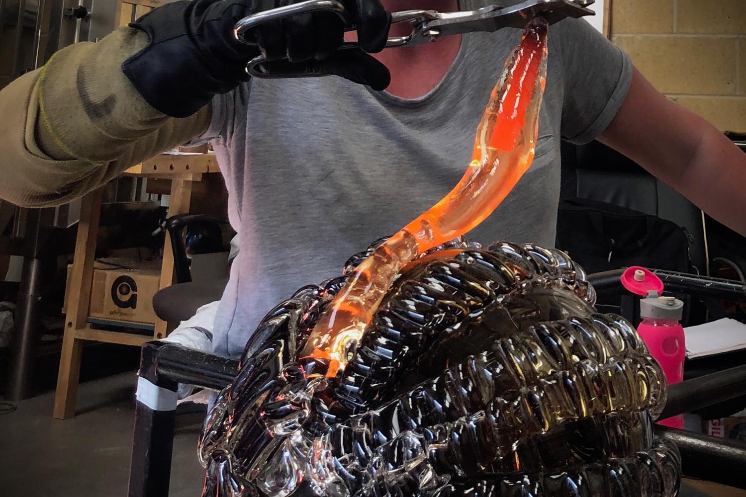 Katherine Huskie's craft consists of creating exciting and tactile glass objects that make the viewer want to engage with the art. Inspired by nature, sea forms, and repeating patterns, she crafts highly skillful, passionate, and immensely beautiful glass works. Katherine is a renowned master of glassblowing with objects gracing many exhibitions around the world. Her glass works are very wholesome thanks to the great attention to the pattern-building that Katherine gives to each piece. She is constantly innovating and developing her techniques, seeking to evolve and find new ways to craft glass pieces. Driven by dedication and commitment, she continuously pushes the boundaries of her craft and strives for better.