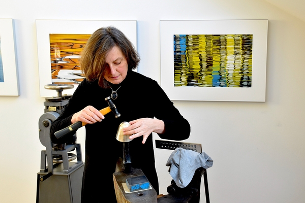 Kathrin Heinicke lives and works in Hamburg, but her work is inextricably linked to the North of Germany. Born in Sylt, she translates Nordic restraint, the play of lines and the landscape of the dunes shaped by wind and water, into her jewellery pieces. The architecture of bridges and the North are two of her main inspirations. The North is reflected in the restrained forms of vessels and jewellery, in the blues and greens of cold water. From an early age, Kathrin knew she wanted to work in the arts. She chose goldsmithing, with the support of her family, and has never been disappointed. Since the mid-1980s, she has been creating jewellery and vessels in her studio, addressing themes such as natural phenomena, the impact of time on landscapes and historical events.