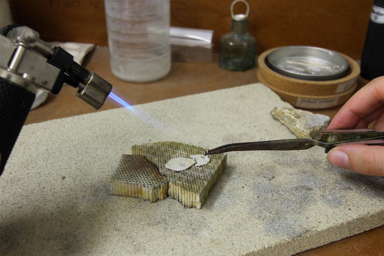 After graduating from the University of Hertfordshire with a BA in Contemporary Applied Arts in 2015, Katy Gillam-Hull was approached by a curator with a job offer. That opened a new path. Part of her work was a residency with a museum to explore its collection. She became obsessed with objects which were forgotten, fragmented and broken, and the histories behind them. Consequently, her work is inspired by the past and artefacts. Mostly she works in precious metals incorporating found objects, often pieces of ceramic or glass with forgotten beauty or a narrative and shows them in a new and reverential light. In the future we may see her other passion, textiles, incorporated into her work.