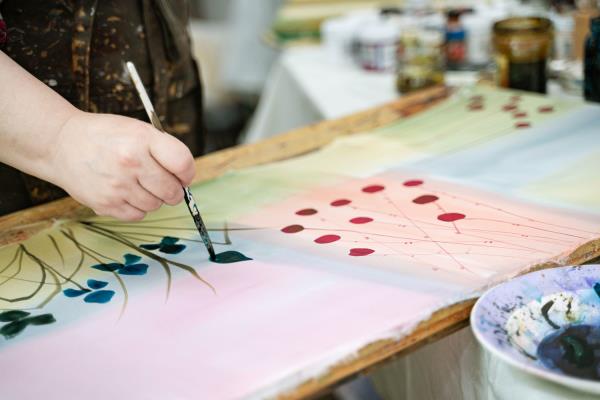 When Eka Khuntsaria graduated from the Faculty of Graphic Design, she got the chance to study batik from her friends. In 1994, she co-founded a textile art studio, La Maison Bleue, which was a well-known textile showroom in Tbilisi. After more than 20 years, Eka decided to start her solo career by opening her own studio, Silkroom, which combines a workshop with a showroom – for her colourful collections – in one space. “I call my technique 'painting on silk' as I apply textile and acrylic paints over the silk, setting the colours by wax and paraffin without using wax-resist lines. My attitude to silk is similar to what the canvas means to the painter – a space without borders.” Over the years Eka’s decorative compositions have been showcased at various exhibitions in Georgia and abroad. Her works are part of many private collections in the UK, USA, Spain, Italy and beyond.
