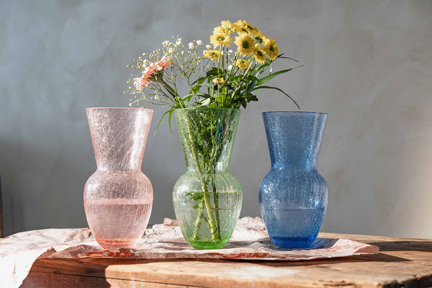 The production takes place in small family glassworks in Kamenický Šenov, established by the founder's stepfather and run by his cousin. Inspired by the surrounding picturesque landscape and local glassmaking tradition, the creators come up with unique designs such as the signature hobnail glassware or the vase collection made of crackled glass. Klimchi aims to produce lifelong pieces that become an heirloom passed down for generations. After all, the founder values family as a fundamental essence of the studio's creation.