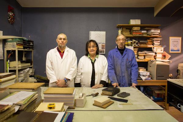 Initially founded in 1924 in Zagreb, Knjigovežnica 1924 (Bookbindery 1924) is now run by Mrs. Vesna Hrkač. Vesna learned the craft of bookbinding from her grandfather and mother which makes her the third generation of prominent bookbinders to continue the family tradition at the same address. Vesna is specialized in goldsmith printing, and has devoted herself in the past years to repairing and restorating antique books, which gave the whole workshop a new artistic aspect. She works together with two other bookbinders in a basement space owned by the Croatian state in the centre of Zagreb.
