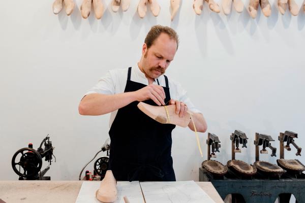 After meeting a theatrical shoemaker, opera student Korbinian Ludwig Heß fell in love with the craft, changing from singing to shoemaking. His two-year training started in 2009 in Vienna at the world renowned Rudolf Scheer & Sons, followed by stints in different countries across Europe. This shaped his vision for bespoke shoemaking and taught him how to incorporate new techniques and styles into his work. Korbinian is a stickler for detail and works entirely by hand; he doesn't even use electricity in his Berlin workshop, which opened in 2017. A meticulous process comprising at least three appointments with the customer and the production of two pairs of fitted shoes results in one-of-a-kind footwear, crafted according to the feet and personality of the wearer.