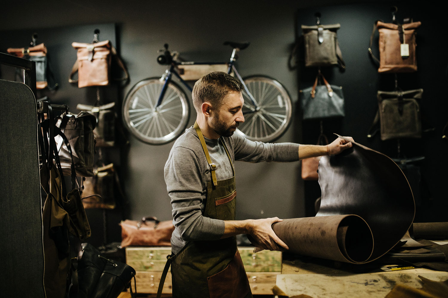 Inspired by vintage objects from the Second World War era and workmen's accessories of the 19th and early 20th centuries, the atelier always delivers excellent handcrafted quality. Kruk Garage specializes in manual and machine tailoring of products with “usefulness” being at the core of its philosophy. Apart from common day-to-day objects like backpacks, briefcases and wallets, the atelier also makes highly specialised items such as leather aprons, bartender rolls, log bags and suspenders. All crafted using masterful leatherwork techniques.