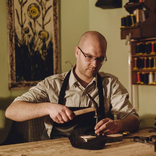 Krunoslav Paun comes from Donji Andrijevci in Slavonia, one of the four historic regions of Croatia. He is one of the last traditional peasant shoemakers in Croatia. Although he graduated as a lawyer, he did not feel himself in the profession, so continued the family tradition of making folk costume shoes, which are called opanak in Croatian. Today, few people wear this type of footwear, so he mostly makes them for domestic and foreign folklore associations and as souvenirs. The whole story with his craft, he says, is coincidental, but for him, it had a happy outcome. He makes interesting, creative, traditional shoes, sandals, bags and boots of leather according to the personal wishes of clients, which then – given the specifics – very often end up as unique.