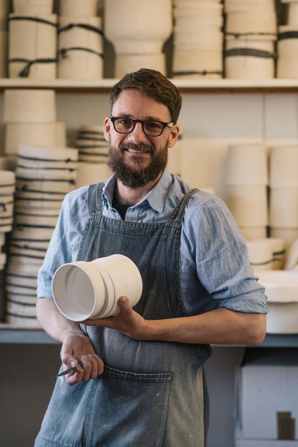 After high school, Lars Rank was planning to become a vet when he took a four-month course in ceramics, and resolved that that was what he wanted to do. He graduated from the Jutland Art Academy in 2001 and has worked on numerous art and design projects, always with ceramics playing a key role. Since 2004, he has specialised in designing and manufacturing high-quality ceramic products for the home. Lars’s work is rooted in the Scandinavian design tradition, and all his products are hand-cast in porcelain, a process that demands both precision and dedication. “The design process is an interaction between the material and the idea,” he explains. “It’s not about controlling the ceramic, but about providing a framework in which it can flourish.”