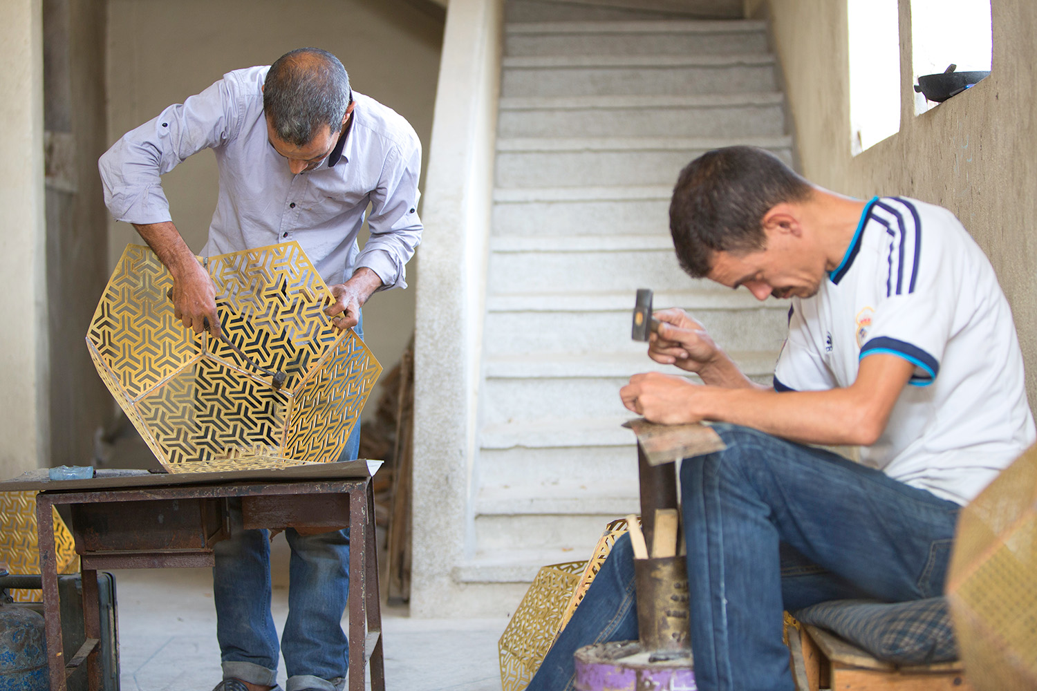 Drawing inspiration from both tradition and international contemporary design, Mohammed and his team deliver masterpieces to the Royal palace and luxurious hotels, while also creating a more affordable range of objects. L'art traditionnel opened in 1970. Mohammed had learned his craft from his father. Since then he has never stopped. Mohammed’s five children all work and live abroad and so the workshop's future may not be in the family.