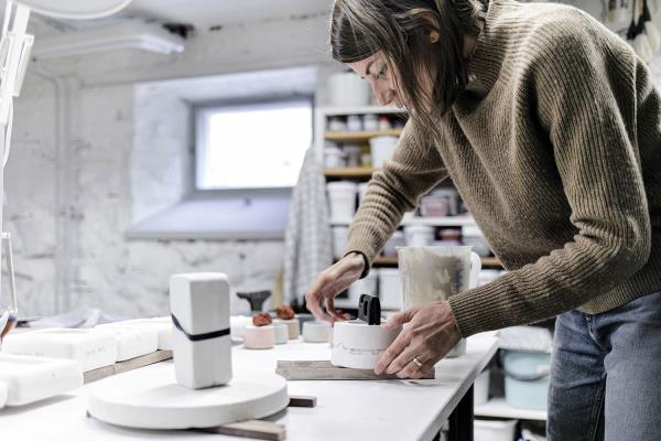 Laura Itkonen's artistic career started in a dark room with liquids and film, since she wanted to be a photographer. But then she realised something was missing, that she had a desire to create something more concrete and three-dimensional. The answer was clay. After graduating from the University of Art and Design Helsinki in 2011 she worked for five years as a visual designer for a fashion retail company. However, clay won over her and she opened her own studio in 2016. Today, she harnesses the possibilities of new technology to broaden the scope of her work. Mixing tradition with modernity and playing with contrasts comprise the essence of her work.