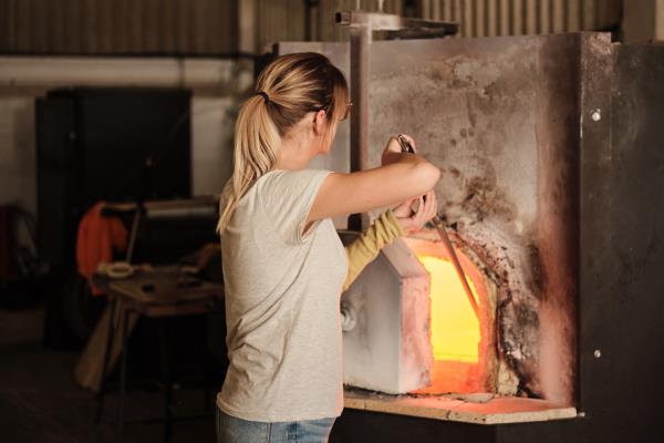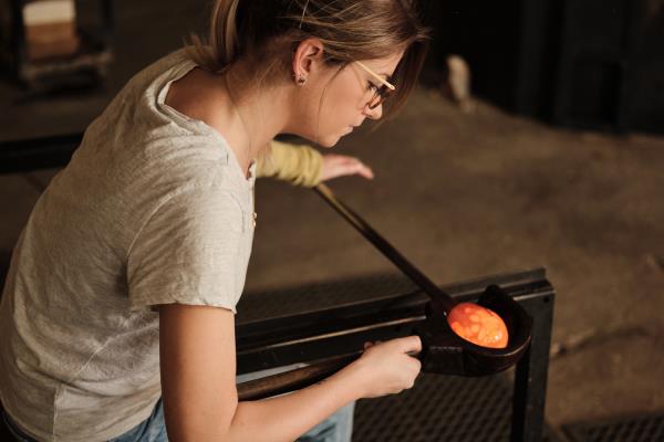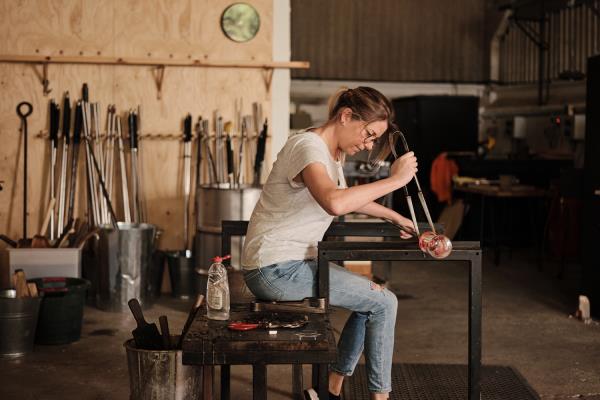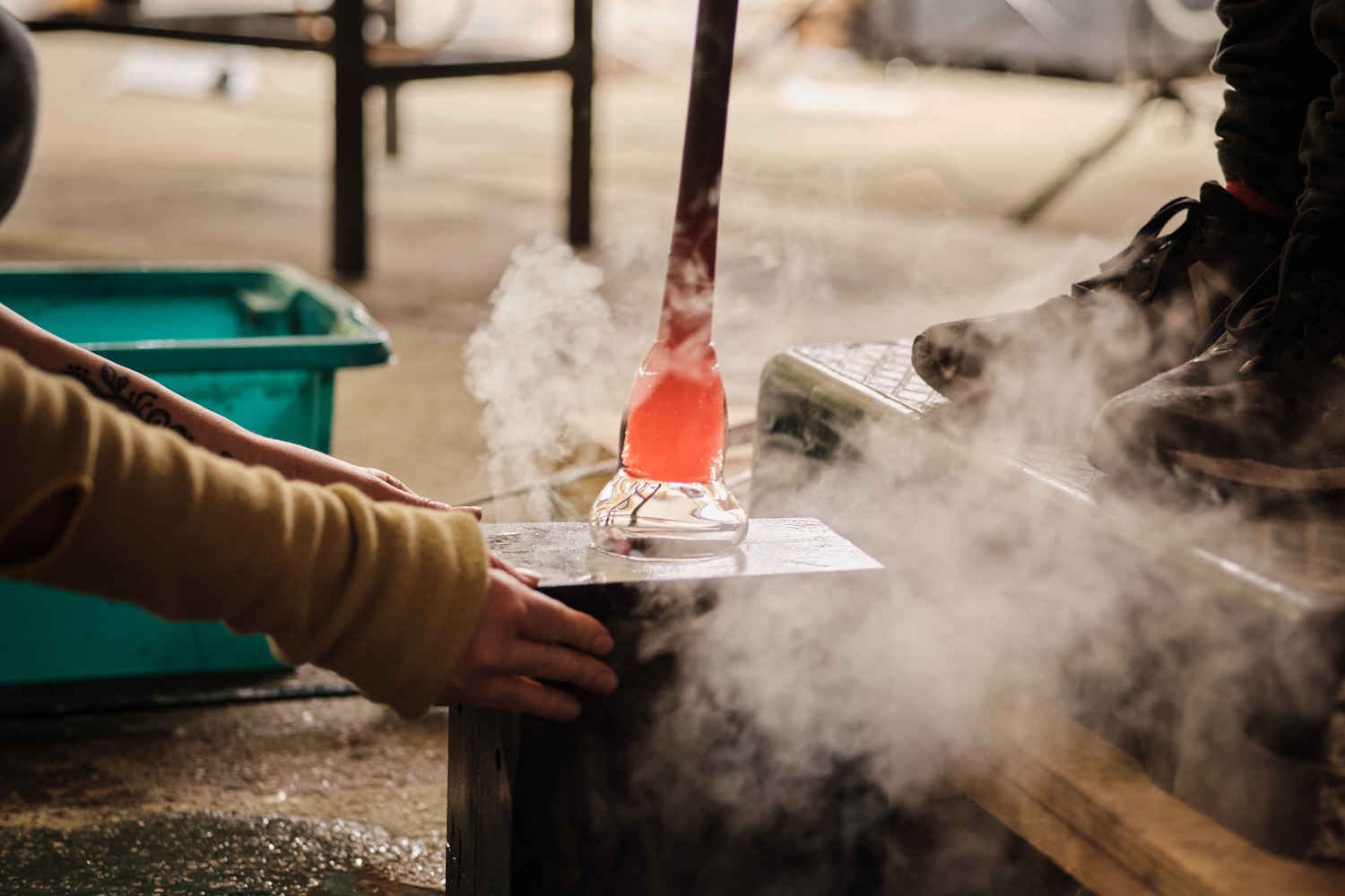 Laura McKinley started out on her creative path early, taking art in school. But it was during her university studies that she discovered and fell in love with the alchemy of glass. Today, she divides her time between the hot glass workshop and her cold glass workspace where she finishes her pieces. In the blowing process there is room for spontaneity and the unexpected, she explains that this often challenges her initial ideas. In the finishing process she dissects the forms and reveals their internal structures, creating components to be carefully assembled later. This balance between the immediacy of blowing glass and the more methodical processes in the cold workshop are reflected in the themes of her work, that is both playful and sophisticated.