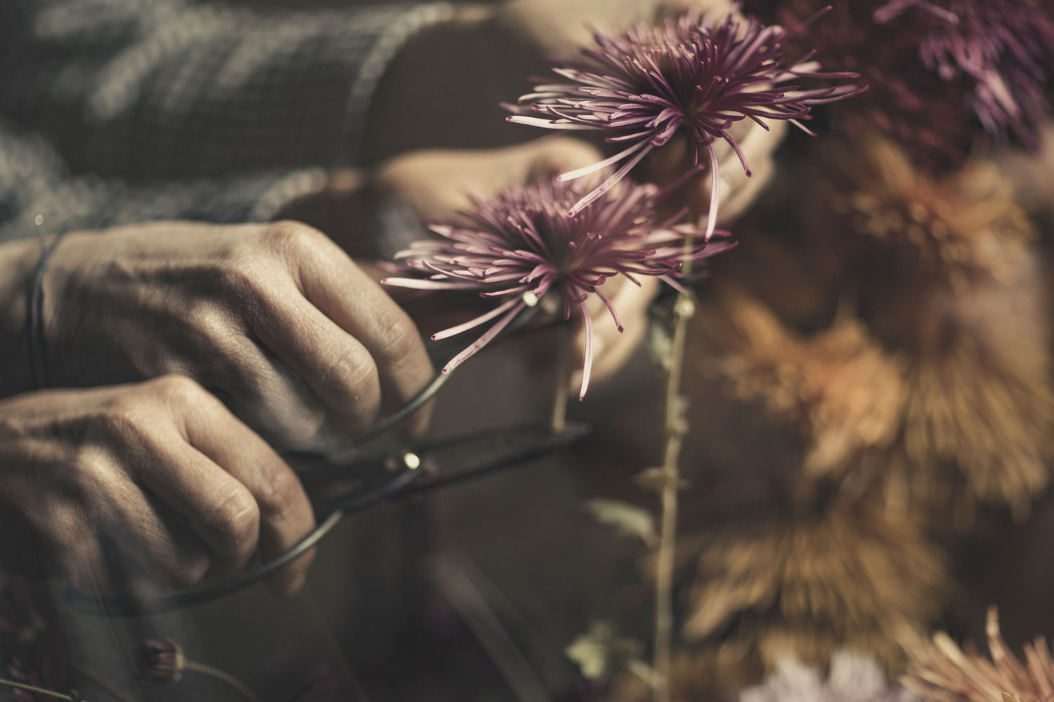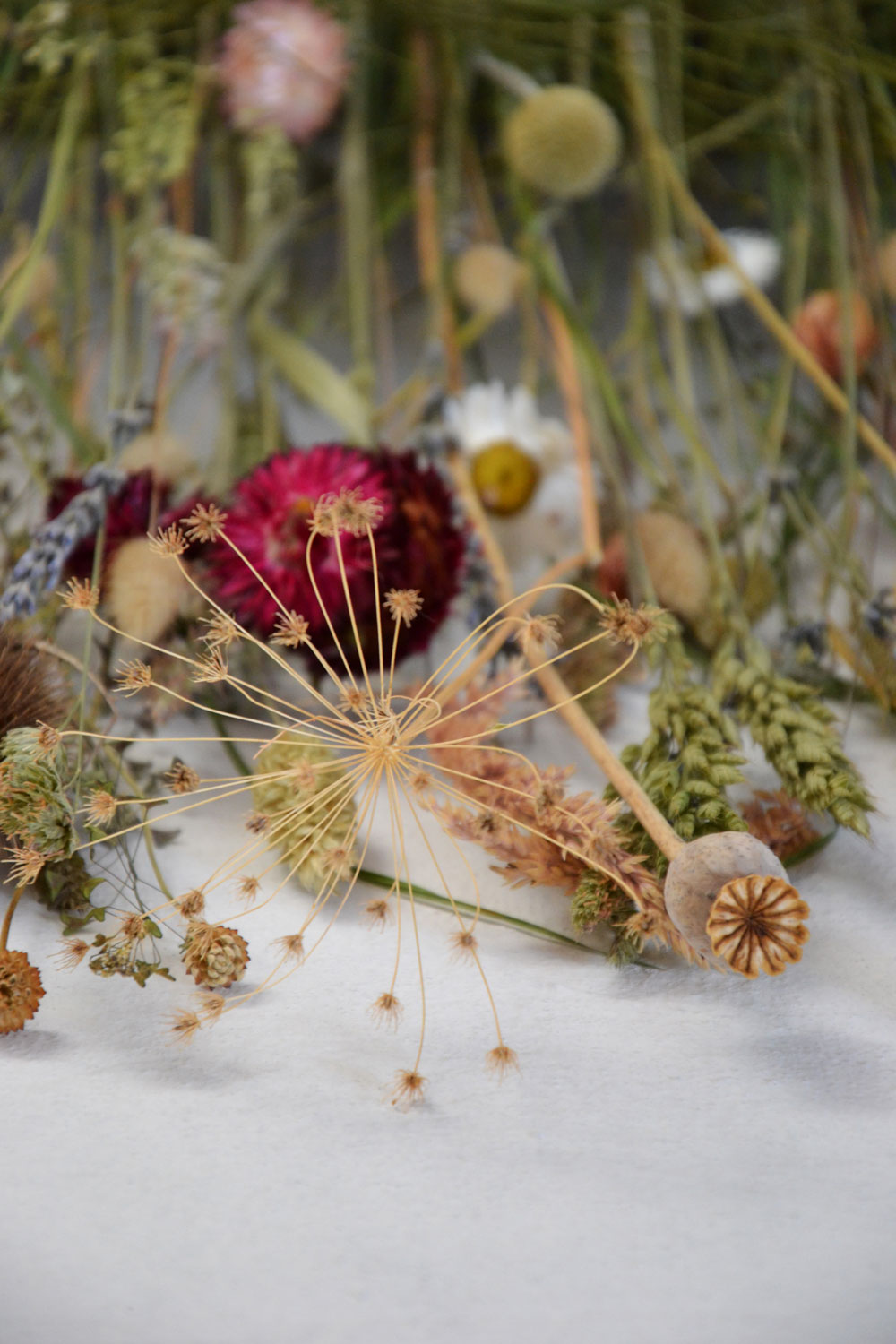 Born in the Karst Plateau close to Trieste, Laura Vaccari, a slow flower stylist – as she likes to call herself – grew up in the woods, swept by the hard-blowing Bora wind. She goes back any time she has a decoration, a flower arrangement or wedding staging to prepare. “What nature leaves, I collect and use in my atelier” she explains. “I pick up broken branches and pieces of wood, prunings and hay from the fields, wild flowers from the side of the road. The less I cut, the better.” Her raw materials may seem humble, even ugly sometimes, but her creativity turns them into beautiful, delicate decorations worthy of a king’s palace. “I just look around and get inspired” she says. “Searching and discovery are definitely the best part of my profession.”