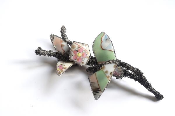 After working as an interior designer for years (having studied art and design and interior design in the UK), Liana Pattihis needed a new challenge. With an innate love for jewellery and making things by hand, she attended a jewellery making course at Central Saint Martins and life drawing classes at Barnet College in order to build her portfolio, before finally studying jewellery design at Middlesex University under Caroline Broadhead. For the past 13 years, she’s been working with enamel on chain, making pieces that echo her Greek and Cypriot roots. Her latest work often focuses on turning unwanted gifts and damaged items into pieces of jewellery and ornaments. “Like in the Japanese art of Kintsugi, by healing the scars of the flawed and the unwanted, we grant them a new life, making them purposeful and desirable again.”