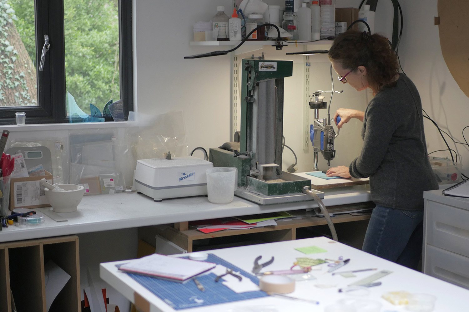 Glass is such a flexible material. I am most interested in the way it records spontaneous movement and its elastic qualities. It interacts with light, producing ephemeral effects while being permanent in structure – it’s a material of contradictions.