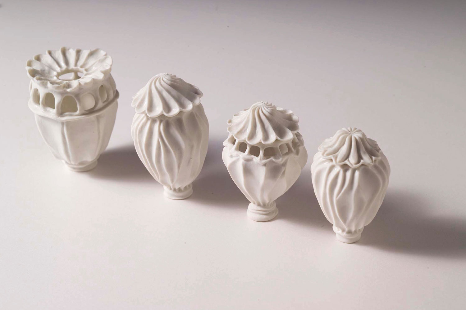 Loren Kaplan trained in fine art and photography in South Africa before illness redirected her towards clay. A friend took her to a ceramics class and the immediate tactile connection to the material became both a form of therapy and the basis of a new career. “Through repetition and silence, the making becomes meditative,” she says. Loren’s practice aided her recovery and has allowed her to connect with her roots through art. Working first in shared studios, then in her own, she developed a language of hand built vessels and lighting strongly influenced by botanical and African basket forms. Now based in Toronto, Loren continues to explore the tension between structure and fluidity in clay, from meticulously built forms to more intuitive and distorted silhouettes.