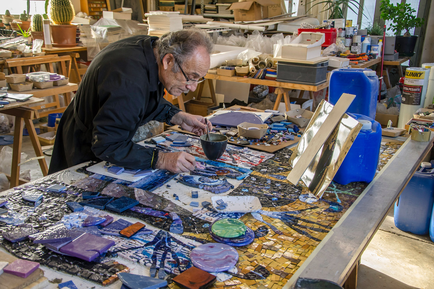 Born and raised in the heart of the ancient mosaic tradition, Luciano Petris was educated at the internationally well-known Scuola Mosaicisti del Friuli in Spilimbergo. He opened his workshop in 1980 in Codroipo, after ten years working for a specialised company. His experience as a mosaic maker covers more than 50 years. Luciano's mosaics are located all over the world. Using mostly Venetian smalti, Luciano can make any kind of mosaic, from small ones to very large creations for walls, floor, bathrooms and pools. He makes both replicas of ancient and modern masterpieces, as well as original contemporary artworks from his collaborations with artists and architects. “Today my enthusiasm is stronger than ever," he says.