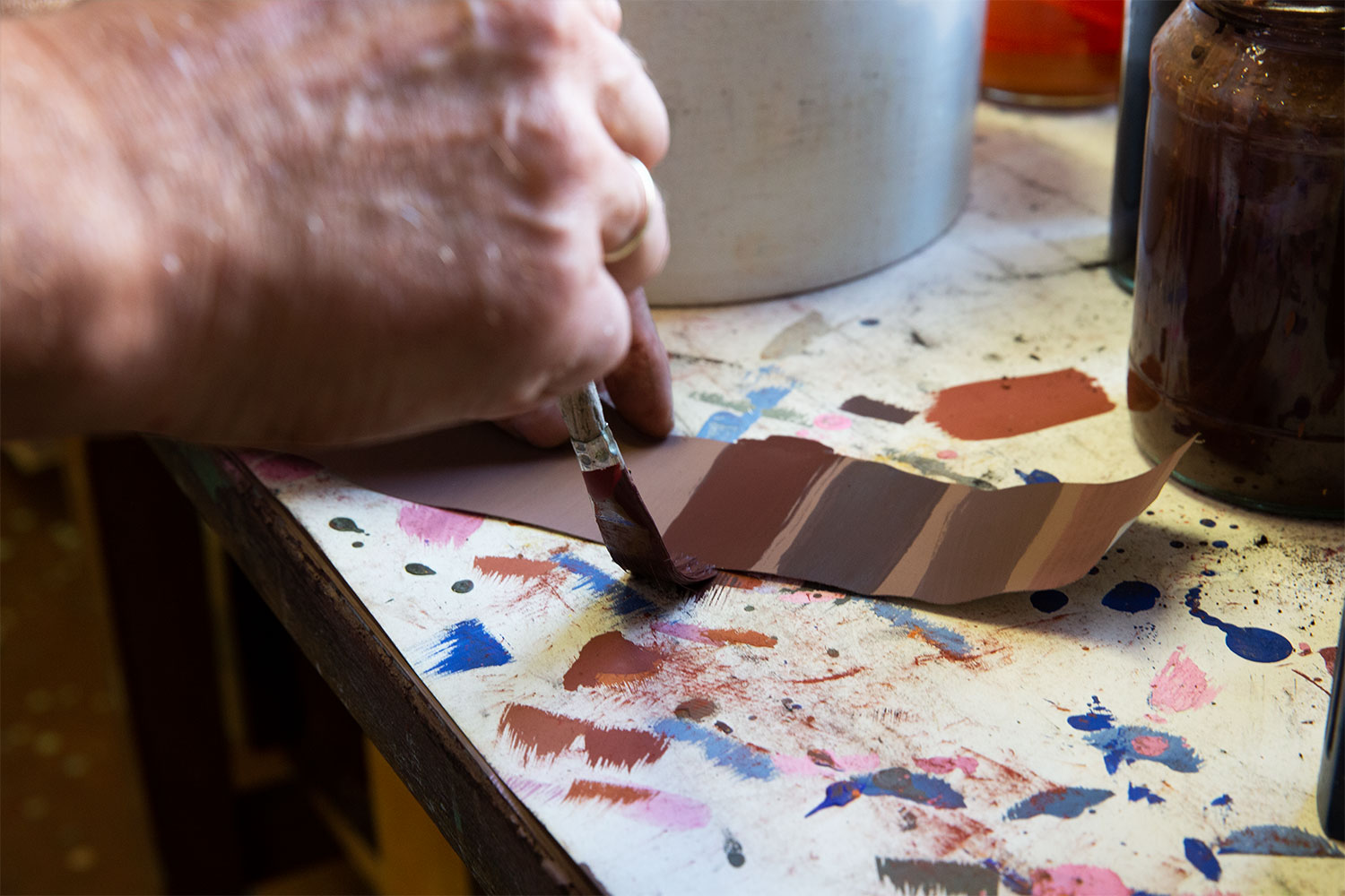 During his architectural studies in the 1980s, Lutz Walter started to specialise in the preservation of historical monuments. Years later, he worked as an architect restoring the residential house of famous German poet Friedrich Schiller in Weimar. One important part of this project was the reconstruction of the house's historic wallpapers and trims. While preparing the reconstruction and researching historical wallpaper printing, Lutz realised that the borders could only be printed by hand. He went on to learn more about wallpaper production in the 19th century by reading his way through the specialised literature he found in the Anna-Amalia Library in Weimar. Finally, he knew enough to embark upon his new profession, and printed his very first product using traditional hand block printing.