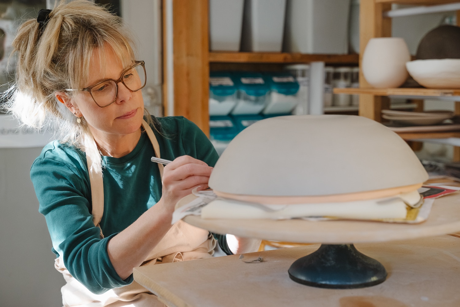 I am surrounded by the island’s trees, river and changing light, so shifts in season, shadow and transparency inevitably enter my work. Living slightly away also suits a reflective studio rhythm. I am developing atmospheric firings on site, and I aim to create a small circle of makers who can fire together here.