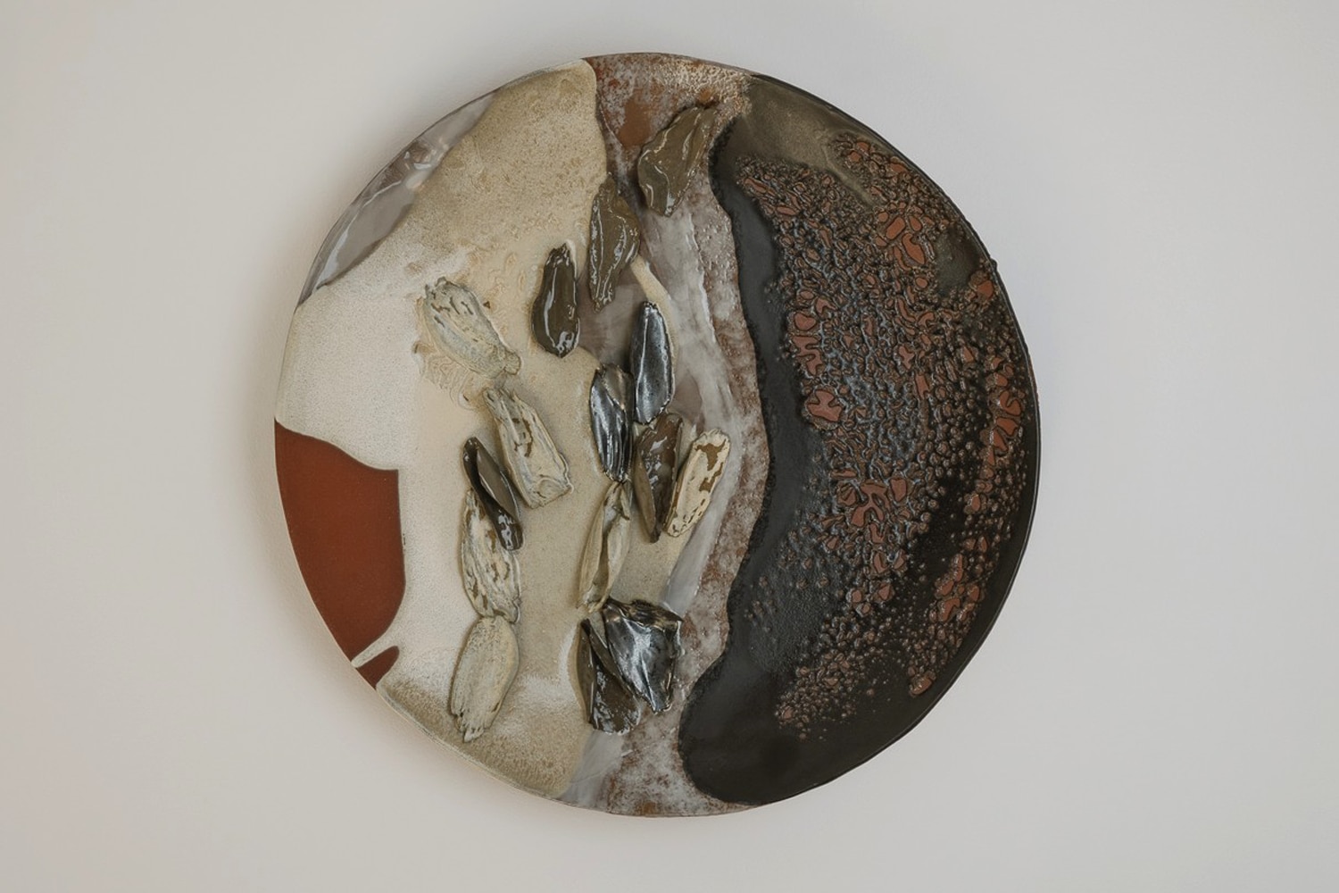 Based on Île d’Orléans near Québec City, Maggie Jalbert works at the meeting point of material research, atmospheric firing and landscape influence. After training in visual arts and glass, she turned to clay at the Maison des métiers d’art de Québec, where she now also teaches glaze chemistry. Maggie’s practice spans wall-mounted tondos, sculptural forms and selected functional commissions, often incorporating wild clay and local ceramic materials. Wood, gas and smoke firings are central to her work, extending her physical engagement with the kiln and allowing fire, ash and chance to leave visible traces of process on the finished surface. In Maggie’s work, she captures the island light, river trees and natural environment surrounding her studio.