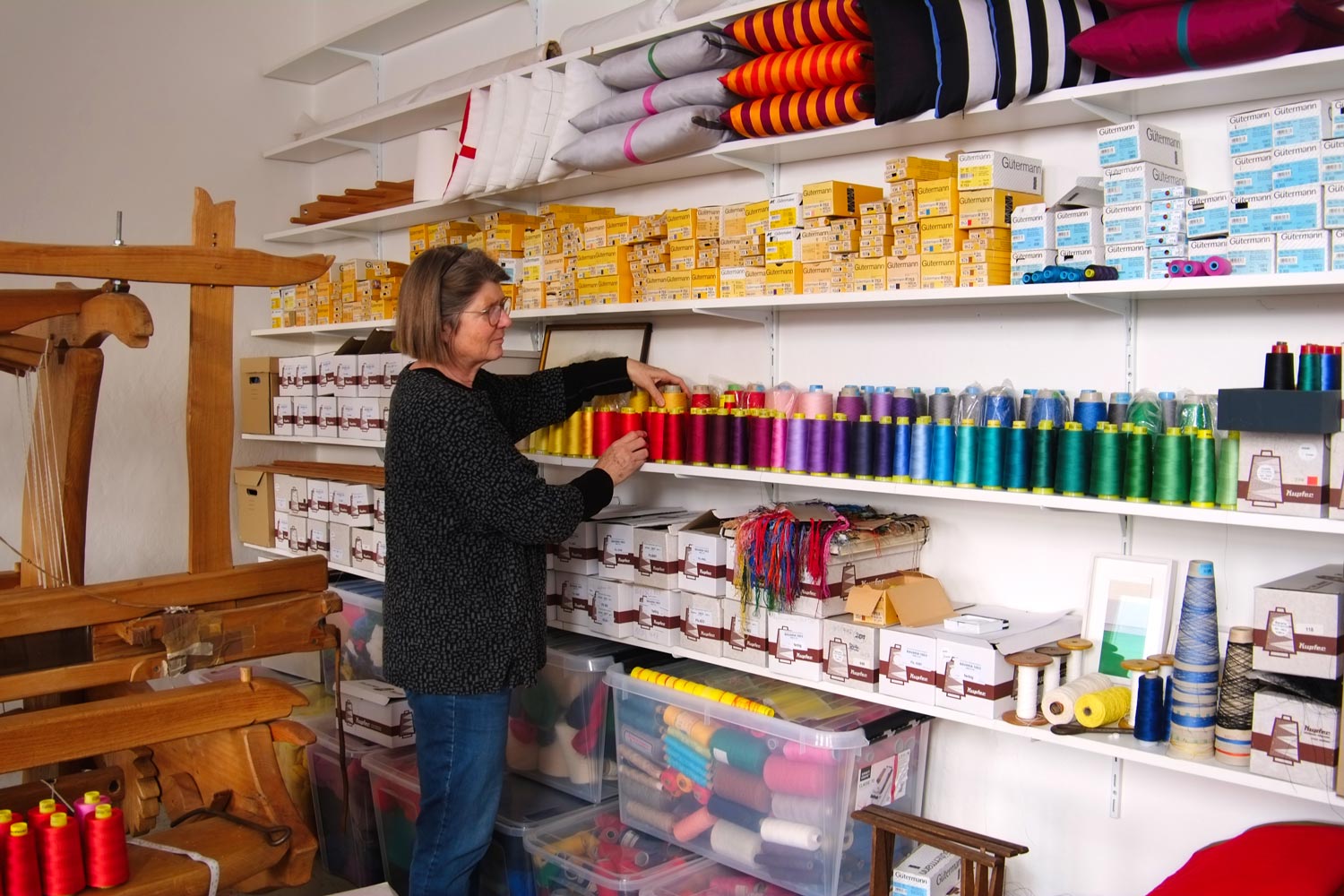 Maja Vogl lives near Regensburg with her husband, the painter Richard Vogl, in a former village school. The studios of the artist couple are also located here. While still a student, Maja did an internship with textile designer and master weaver Sigrid Reeckmann and trained under her after school. Following her training, she began to study painting at the Academy of Arts in Munich with Rudi Tröger. "Early in my studies, I decided that I preferred weaving because I can create a greater depth of colour through the fabric," explains Maja. As well as monochrome surfaces, she likes to work with free graphic patterns made up of individual threads or stripes in a different colour. With a great deal of joy for experimentation and tremendous technical skill, Maja pushes the limits of what is possible with a handloom.