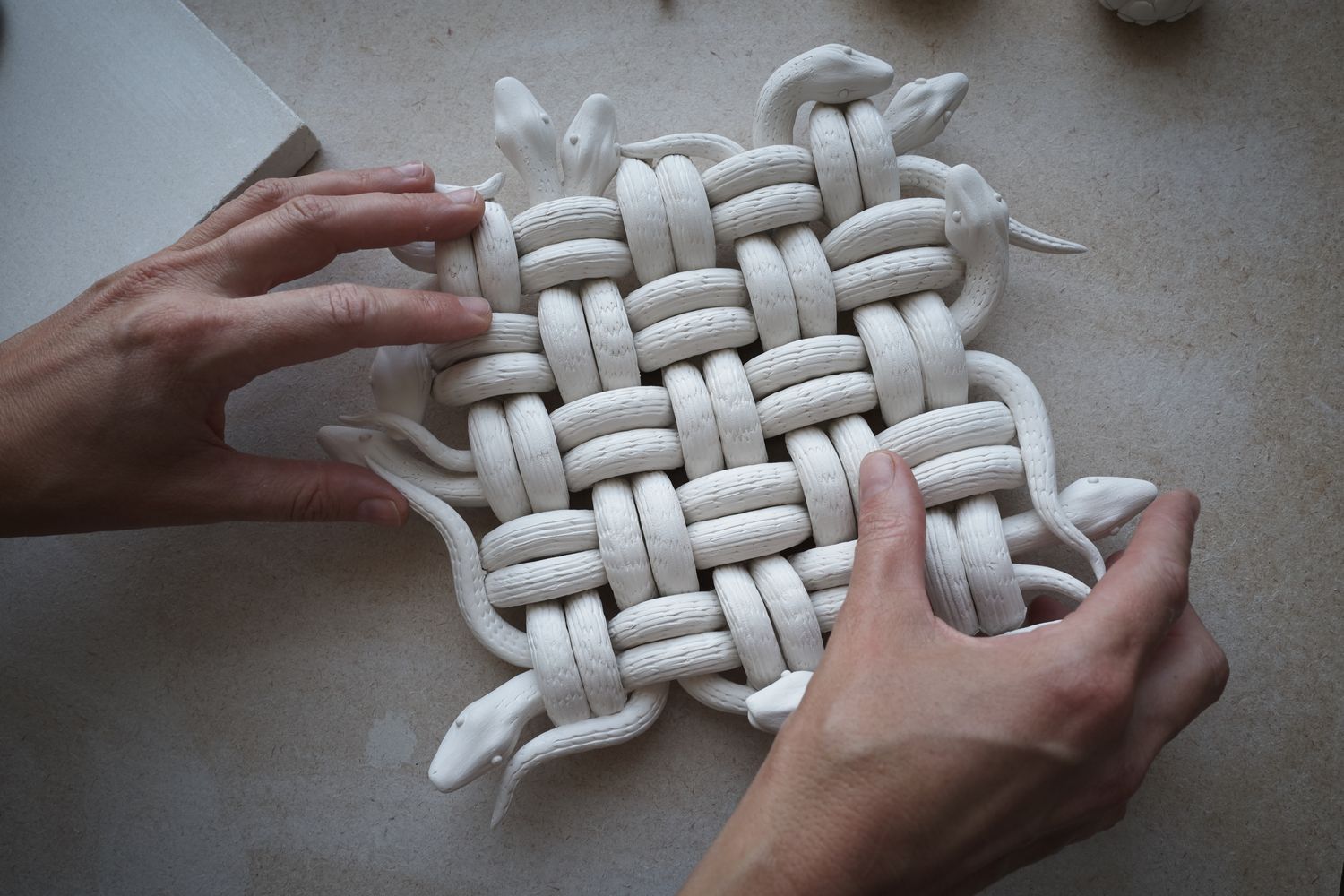 Malene always enjoyed creative activities including drawing, knitting and crocheting, but she initially pursued her love of arthouse films by becoming a cinema projectionist in her native Denmark. During her 20s she started taking pottery classes with a friend on the weekends, a hobby that grew into something more as she fell in love with the material and started selling functional ceramic pieces at craft markets. When she turned 30 she finally gave up the cinema and went to study ceramics at art school in Bornholm, where she moved from functional work into sculpture. Now, she lives and works in London, where her many achievements include a residency at the V&A museum.