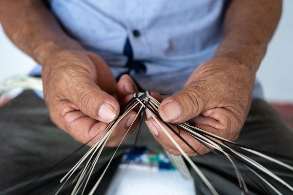With infinite ability, Marcial Montalvo explains the different parts of the hat, the symbols in the hat’s crown, and the techniques in the braids that give shape to this item. Weaving is his daily work and through this he works to preserve and exalt the tradition of the sombrero vueltiao. He never imagined that this emblematic hat, which was traditionally used by Colombian peasant people for protection from the sun, would be as popular as it is today. Important people such as Bill Clinton, John Paul II, Gabriel García Márquez and Alejandro Fernandez have worn this statement hat, and this has made the Tuchín municipality and its crafts tradition become very visible and known worldwide. Today, more than 70% of Tuchín’s people is devoted to growing the crop, harvesting, processing, or weaving Caña Flecha fibre.