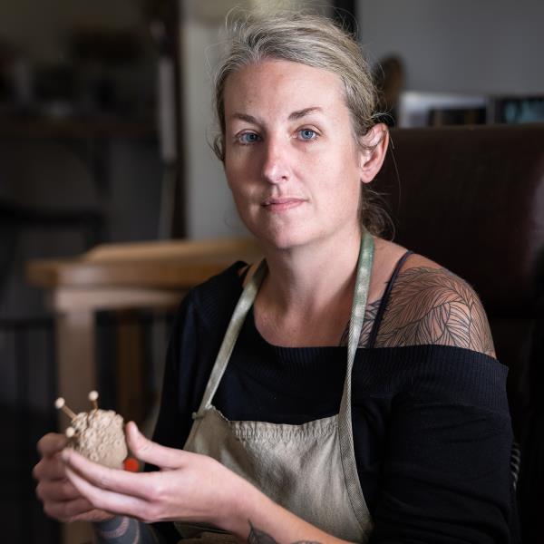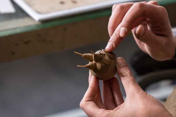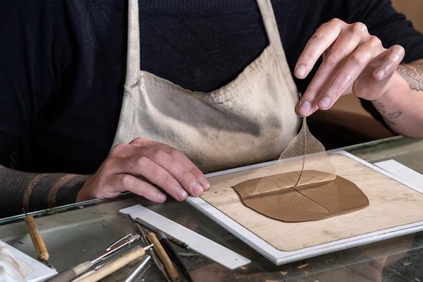 Inspired by nature, its forms and scents, Marie Gourault works with bronze to create sculptures that allow us to imagine the fantastical universe of her mind. Pine cones, leaves, flowers, insects take on new appearances in her hands, tipping into the unreal. Her final object is precious, bright and charming. Living at the foot of the Pyrenees, Marie often walks in the woods and draws inspiration from the natural world. Artist and mother, she is also influenced by children’s literature, rich in fantasy. The use of bronze may seem unusual, but to Marie, as it is one of the most ancient metals, it carries with it great heritage.