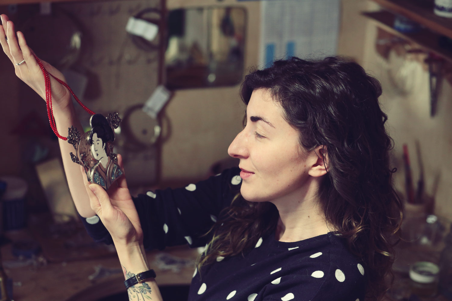 Since childhood, Marta Norenberg rebelled at anything traditional and experimented instead with handicrafts. After completing her studies in Art History in 2010, she undertook various activities to broaden her skills, including laying large-format glass mosaics, studying glass melting, learning the Tiffany-stained glass technique as well as completing a one-year-long goldsmith course. It was during the latter, studying with master Andrzej Bandkowski, that her love for silver jewellery really took hold, and which, in 2013, she turned into a business. Since then, she has been creating custom-made jewellery combining several of the techniques and skills that she has acquired. Her breakthrough project was a copper necklace made of felted merino wool, embossed and dyed leather then framed with precious stones. Marta finds inspiration from the richness of fauna and flora, as well as literature characters and fantasy creatures.