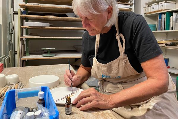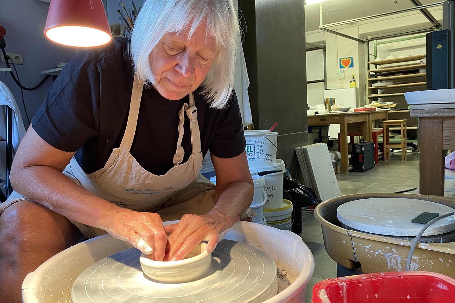 Martine Mikaeloff fell in love with ceramics around her 40th birthday. “But I always had a love for arts and crafts, at first for drawing and painting, and I studied fine arts in my youth,” she says. “When I tried my hand at throwing clay on the wheel, I was immediately captivated by the contact with the material.” In the following years, she opened her own workshop and made this new passion her profession. She also gradually started to specialise. “I focus on the search for new glazes, which is a truly vast field,” she says. “I sometimes spend one to two years on specifically researching a glaze.” The forms of her creations – cups, bowls, plates, dishes – are simple and pure, but always different.