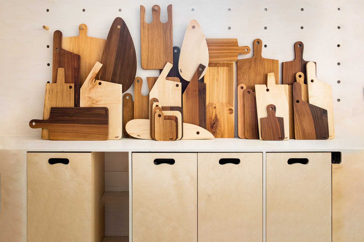 Husband and wife duo, Filippo Mastino and Rosa Bittolo Bon, used to work in Venice as architects, when they decided to move to Trieste and open their own craft business, VUD, less than ten years ago. A designer with great passion and talent for construction, Filippo turned into a contemporary craftsman, able to follow his projects from conception to completion. He focused on wood, “sweet and terrible material", and started crafting simple, elegant objects assembled with no screws, like boards and tables. Step by step, he added furnishing accessories and small decorative items. In their workshop products are created in front of the clients, thanks to the open-plan workshop. Behind every single product or every choice Filippo and Rosa make, lies a clear brand identity, a key to their success: VUD objects are meant for conviviality.