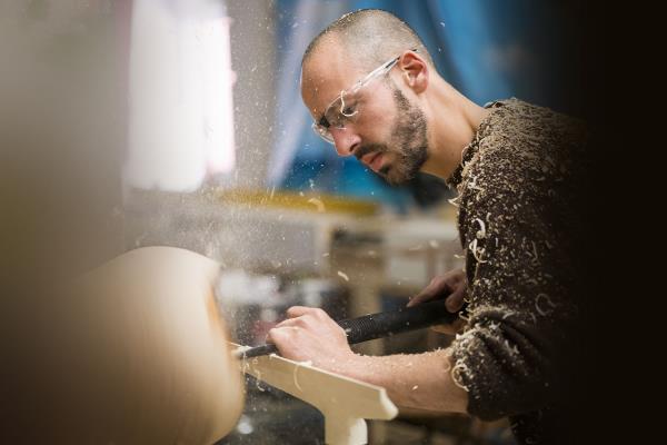 Following his training in carpentry and woodwork, Maxime Perrolle had a chance encounter with a woodturner and was immediately captivated. He began turning small pieces on his own, then sought formal training. After a year at France’s only woodturning school, the Ecole Escoulen, he founded his own workshop in 2016. “Traditional woodturning is strictly for furniture, but modern woodturning incorporates various artistic techniques to create unique works of art,” he says. Maxime only uses local materials, and his works convey a deep respect for his primary material: France’s native hard woods. “I work a lot in oak and ash, whose structure and texture are an excellent medium.”