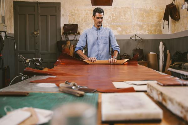 David Iglesias is a Spanish lawyer. Melina Carranza, a Mexican architect. They were searching for their true vocations when they met in his shop in Madrid, where he sold leather goods for bikes. She was looking for someone to teach her the art of leatherwork. He had run his family’s bag factory but had left it disappointed by the mass fashion production. Melina wanted to create small collections of handmade products with top quality raw materials, far from industrial manufacturing. This idea aroused his interest, and he joined her project, a more traditional and sustainable business. It was love at first sight. They met, fell in love, found their calling together, and Oficio Studio became their passion and philosophy of life. In 2012 they travelled around Spain in search of the finest tanneries and tools they needed to make their products in their home and workshop. Their first object was a doctor’s bag, which soon became a bestseller.