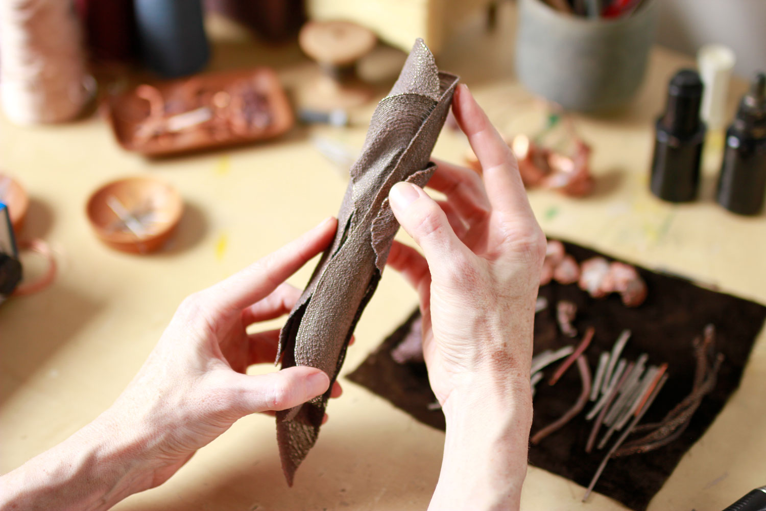 Assembled through an intuitive, impromptu language, Michaela Pegum's jewellery and sculptures transmits an energy so strong, it prompts viewers to wonder if they emit sound, continue to grow, or exist as something organic, alive and uncontained. Working with materials such as electroformed velvet, she manipulates amperage, chemicals and metals to allow sediments to accrete over time. Michaela creates forms that may be rigid or porous, smooth and metallic, or bulbous and mineral-like, with organic finishes that range in hue from vibrant to subtle. "I begin with an idea or instruction and respond instinctively," she says, drawing on the same sensibility from her experimental dance background. “It is a conversation based on feelings, with a sense of something being uncovered."