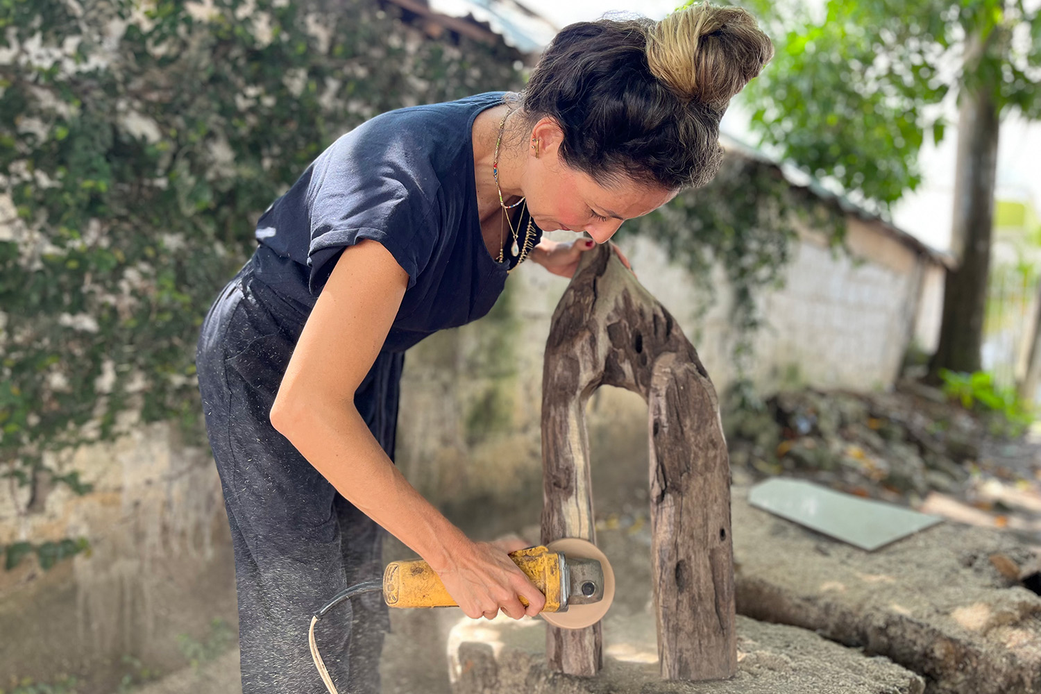Miriam Márquez has forged a collaborative relationship with the sea, wind and sun at her beach house off the Gulf of Morrosquillo, on the Colombian Caribbean coast. She communicates with nature during her long beach walks as she 'hunts' for new pieces of driftwood that have washed up onto the beach. When she finds an interesting piece, she patiently awaits the drying process under the sun to discover the species, its creases, streaks, and fissures that salt water, currents and tides have brought on to it during a journey from an inland river to the gulf and back. Miriam observes the piece of wood until she can rewrite a story with it, respecting its marks and natural colours, to give it new life as a sculptural or functional piece.