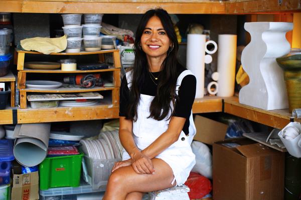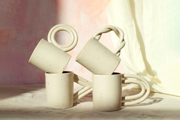 With a degree in graphic and communications design, Miyelle Karmi originally worked as a graphic designer and art director for 15 years, until one day the idea of working ceramics popped into her head. Once it was in, she could not get it out and she thought “I need to give this a try.” The self-taught craftswoman had no formal education in ceramics before launching herself into this second career. She learned by watching YouTube videos and talking with other ceramic artists from the Clay Collective, a hub where she shares a studio space in London. As soon as she discovered working with clay, she fell in love with the process and the feeling she got from holding an object that she had made with her own hands. Miyelle's intention is to make pieces that are tangible, functional and enduring.
