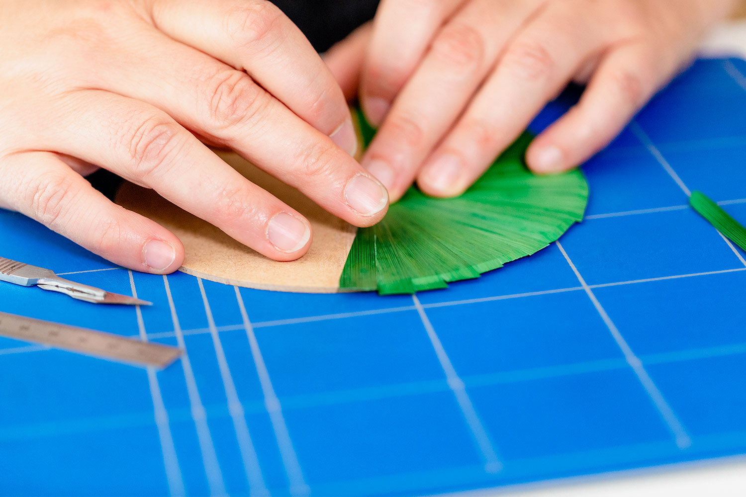 It was a summer day in 2014 that marked a turning point for Mélanie Richet. She searched the internet and came across a description of the technique and the necessary equipment for straw marquetry. Since it only needed very little material, she decided to give it a try and bought what it takes to get started. From her first try, it was obvious that straw was her material! She became fascinated by its singular aesthetic, the way light dances on its surface, its mineral side, sometimes almost metallic but also warm, and its countless nuances of colours. After several years of intense practice, in 2018 she opened her workshop and specialised in contemporary straw marquetry jewellery and straw dying. Mélanie is originally French but she lives in Germany. She is influenced by the stories and traditions of both countries in this specific craft, with their similarities and differences.