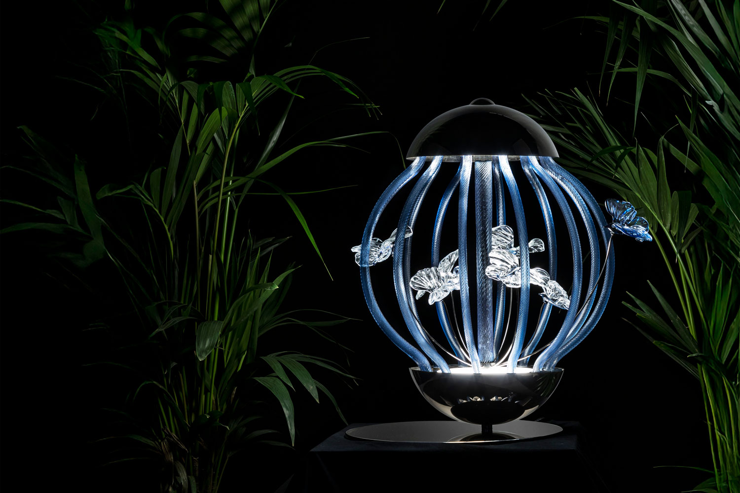 Multiforme has been manufacturing artistic glass chandeliers since its founding in 2009 by Renata Zorzi and Alessandro Policarpo. The studio was inspired by the combination of the different, distant professional worlds of its founders, engineering and antiques. The name Multiforme embodies their philosophy: the form of light must inspire emotions, adapt to spaces and live up to those who inhabit them.