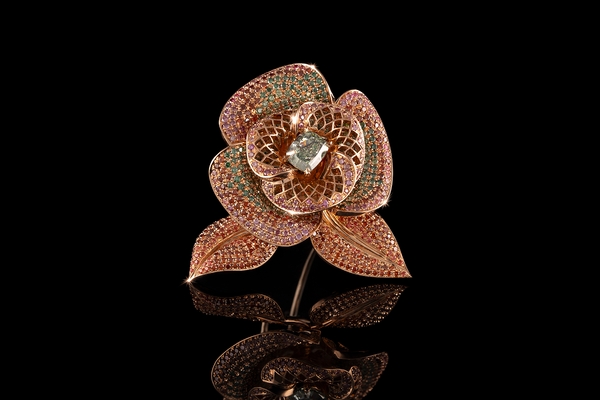 Nigel O’Reilly’s work is defined by the blending of ancient and modern techniques in his own inimitable style, complete with vibrant and voracious quantities of coloured gemstones. His recognisable gold latticework is a signature of the brand, as are generous volumes and undulating shapes. O'Reilly's jewellery inspiration focuses on themes of nature, molecular science, and the merging of technology, art, and fashion with notable favourites Iris Van Herpen and Alexander McQueen.