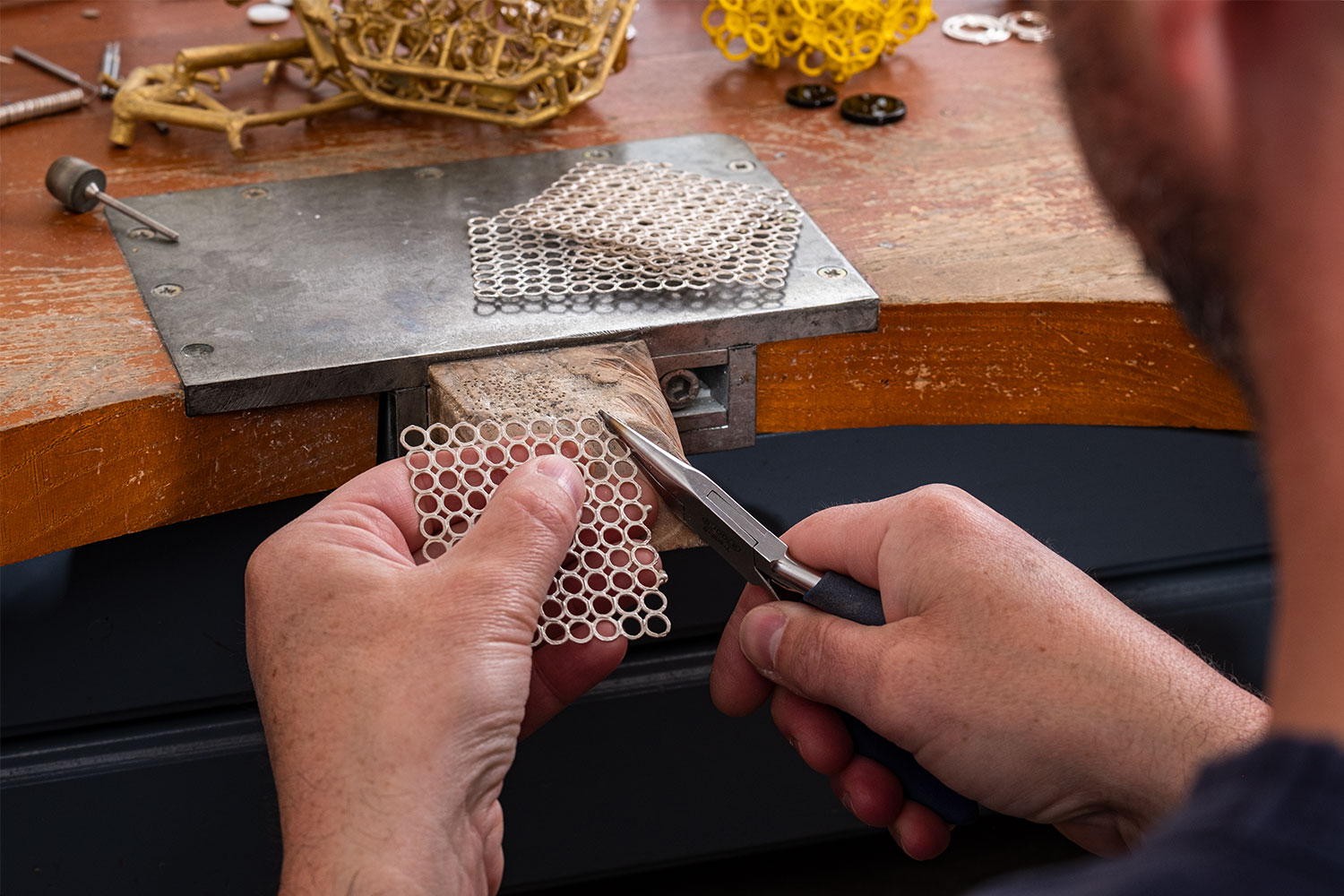 Nikolay Sardamov has created art since he can remember, starting with drawing at an early age. Later, at an applied arts school, he developed his passion for jewellery making, which became his chosen profession. He received a BA in Аrt Еducation and an MA in Jewellery and Metal at the National Art Academy in Sofia. Participating in two Summer Academies in Salzburg marked a turning point in his career as a contemporary jewellery maker, opening his eyes to the possibility for experimentation with various forms and materials. Nowadays, he is a key Bulgarian jewellery maker, presented in galleries around the world and a selection of his works feature in the Victoria and Albert Museum's jewellery collection.