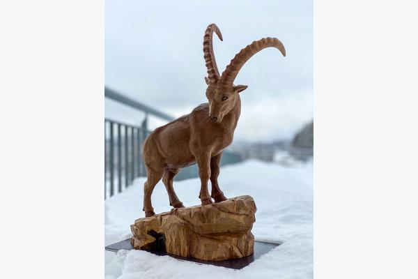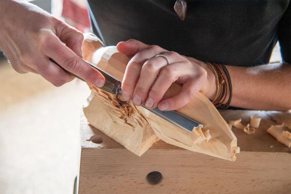 Nora Engels grew up in the Swiss canton of Graubünden with a passion for wood sculpture, a craft her father taught her. She decided to formally train at the Brienz woodcarving school and is now an accomplished craftswoman, having opened her workshop in January 2021 in her hometown of Samedan. Her lifelike sculptures include animals, figurines and full-scale creations, and her skill for detailed carving can make her pieces seem like wooden embroidery. She describes her strength as the ability to animate her work and make it come alive. As well as woodcarving, Nora has an eye for design and likes to use other materials such as steel, offering a fresh perspective on this ancient craft and its possibilities.