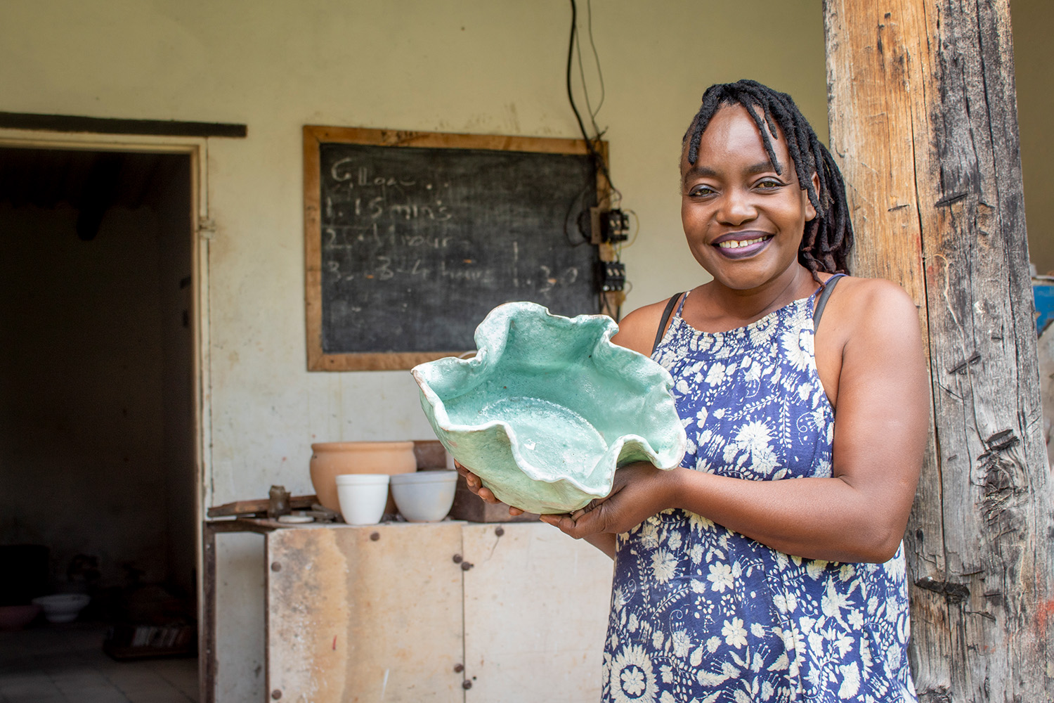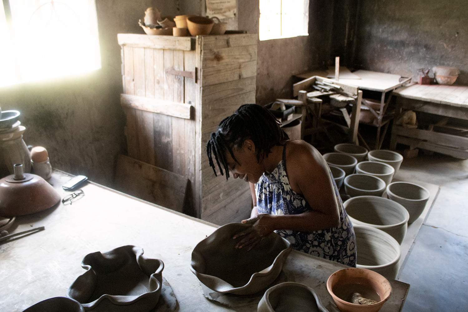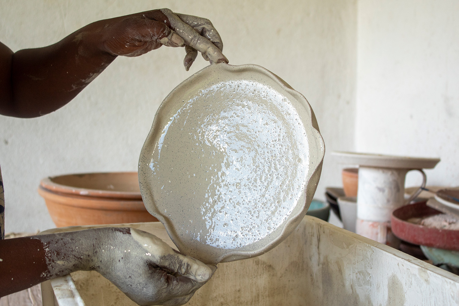 It was not until she studied ceramics at university that Nyari Kadhani-Gurupira found out that she was a third-generation potter. Her love for pottery had been ignited during a school holiday spent at a local pottery studio. After university she taught ceramics for a few years, then with support from her parents and with her husband’s encouragement, she quit teaching to pursue pottery-making full-time. Working from a shed in her garden, Nyari opened her workshop in 2002. She defines her work as a combination of traditional African pottery and modern ceramics. She lives on a farm, which provides her with an endless source of inspiration and materials from nature. "There is so much to forage, incorporate or copy. You never run out.” This lends her work its signature rustic charm.