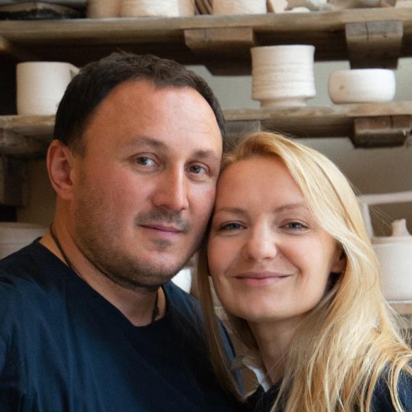 Partners in life and in the studio, Oleksandr Barabanov and Halyna Kanyuka hold degrees in history and marketing respectively. United by their love of ceramics, in 2017 they decided to start a studio in Kyiv and entirely devote their lives to this ancient craft. When asked about their profession, they say that it’s all about “finding new expressions of clay and filling the space with beauty”. The artisan duo are not shy to experiment with forms and techniques. SaGa Pottery’s objects boast uneven, rough edges, flaming, bold glazes and a strong sense of interior aesthetics. Oleksandr and Halyna’s ceramics are very popular among craft connoisseurs in Ukraine and abroad and are regularly featured in fairs and exhibitions.