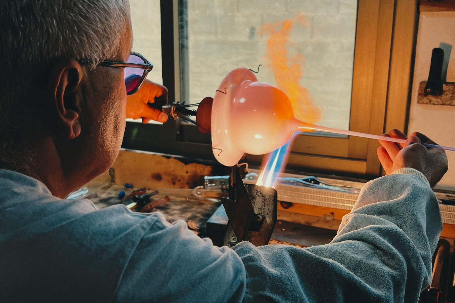 Born from the desire to merge traditional craftsmanship with a poetic and playful impulse, Ornamental by Lameice was founded in 2021 by Jerusalemite Palestinian designer Lameice Abu Aker, based in Milan. The atelier aims to transform handcrafted objects into vessels of emotion, memory and cultural heritage. Its collections take shape through blown glass created in collaboration with a family of glassblowers from Jaba’, a West Bank village, where this art has been passed down for generations. Palestine has a long and rich history linked to glass, and Ornamental by Lameice helps keep this legacy alive by working exclusively with free-blown glass, without any moulds.